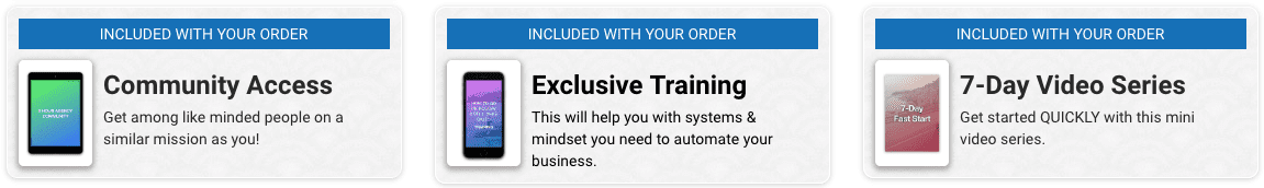 You're Also Getting Advanced trainigns and bonuses Valued at ver $985 included with your order here today completely free of charge