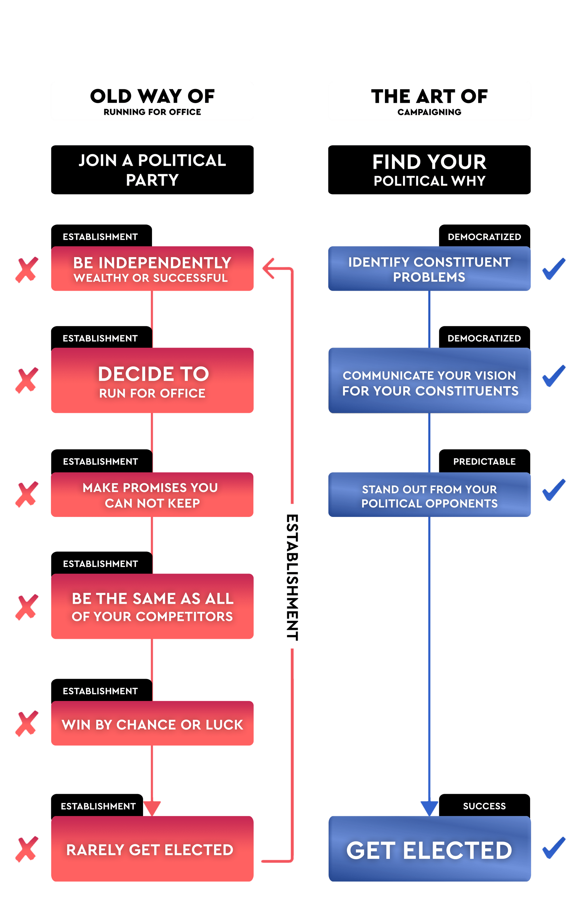 All you have to do is follow the process we show in the art of campaigning system and you'll know exactly what you need to do to create a highly engaged and successful campaign when running for office...